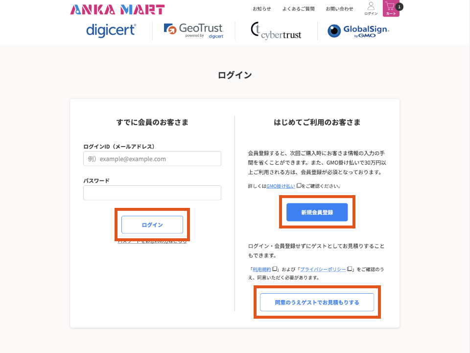 - 会員登録なしでもご注文・お見積もりは可能です。