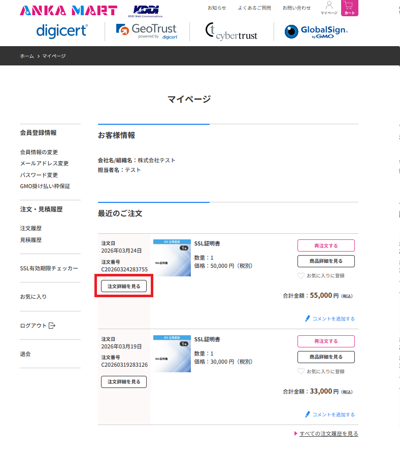 会員登録をすると、マイページで過去の注文履歴をまとめて確認できます。