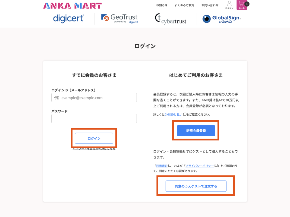 - 初めての方:[新規会員登録]から会員登録が可能です。