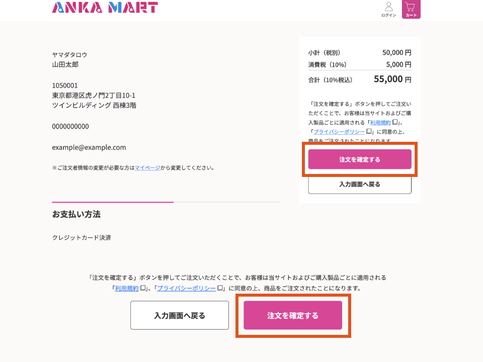 ご注文内容に誤りがないかご確認のうえ、[注文を確定する]ボタンをクリックしてください。